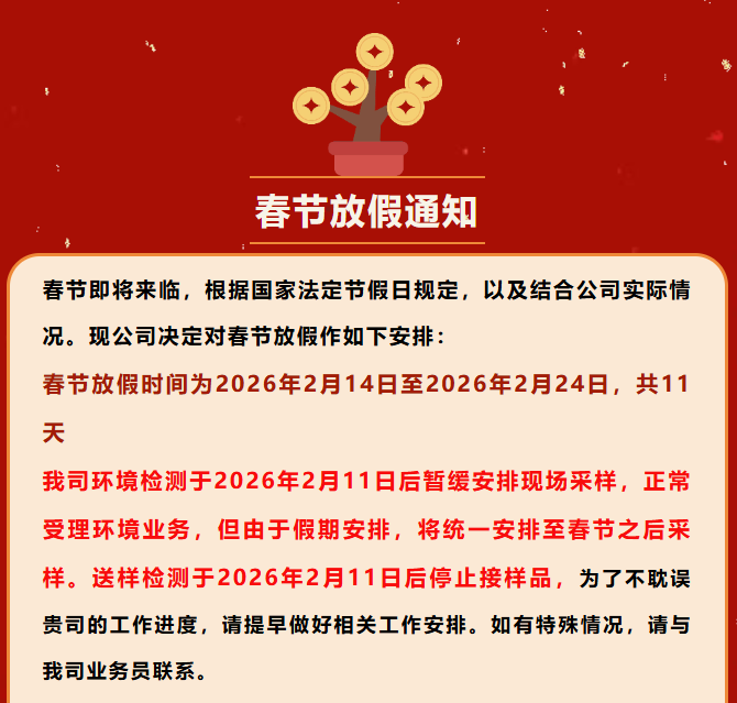 艾特思检测 | 2026年春节放假及停止接/采样品通知函