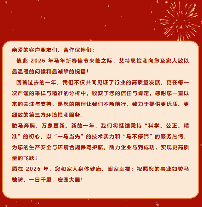 艾特思检测 | 2026年春节放假及停止接/采样品通知函
